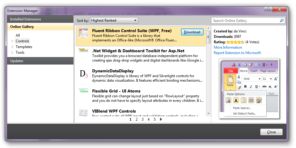 Ха, Fluent добрался до первого места по highest ranked в Visual Studio Gallery.